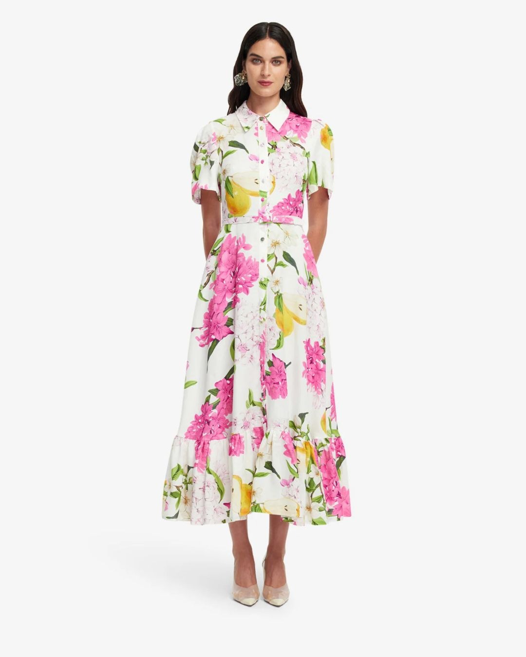 Leo Lin Becca Short-Sleeved Midi Dress in Floral Pear