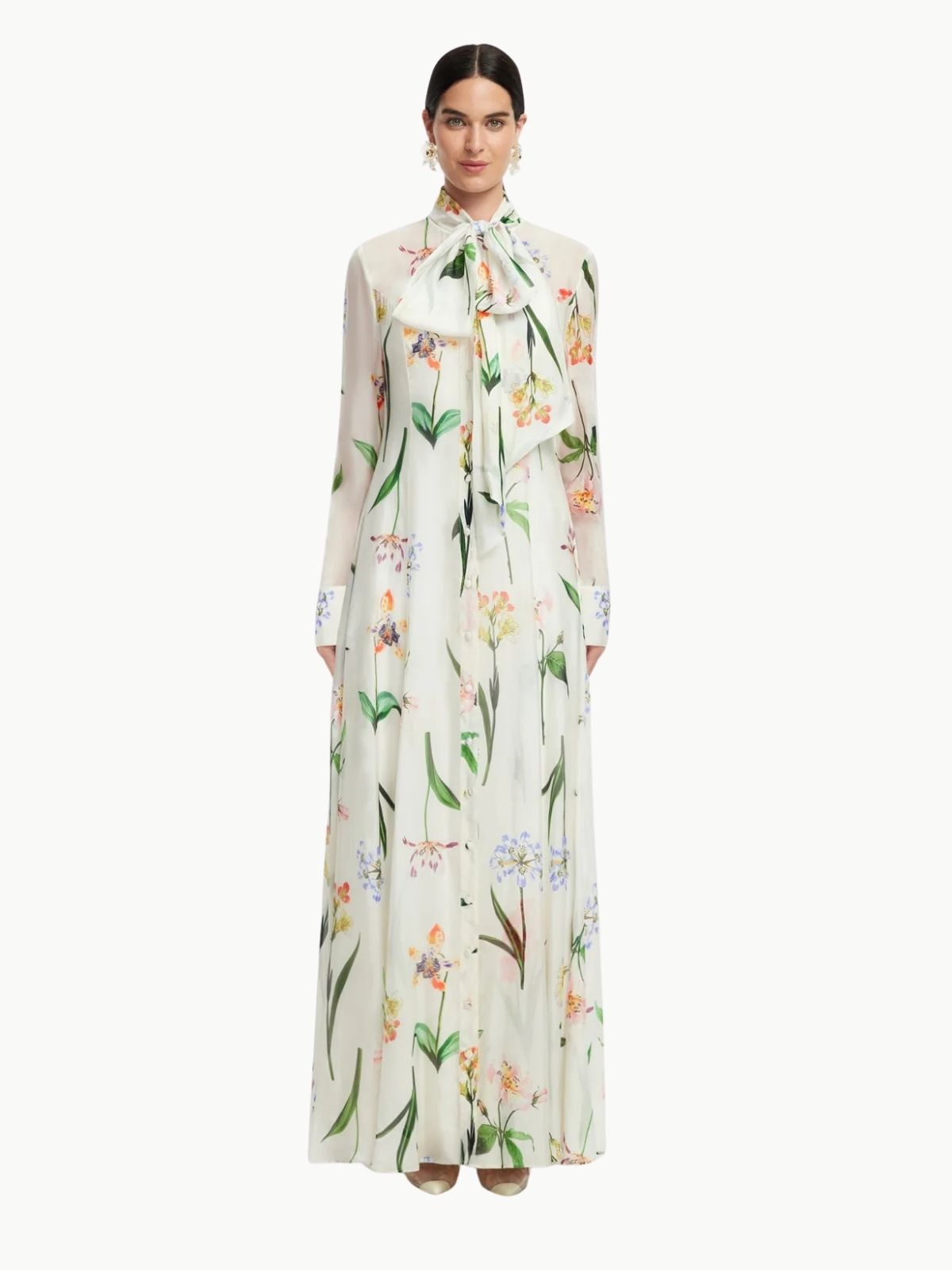 Leo Lin Lilith Tie Neck Maxi Dress Botanical Print in Snow
