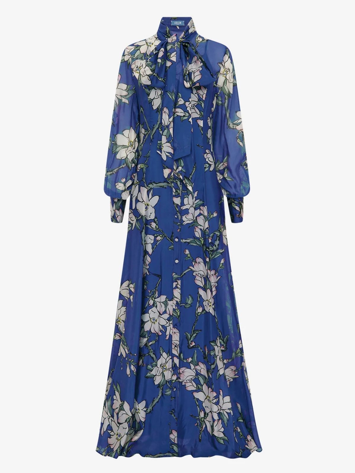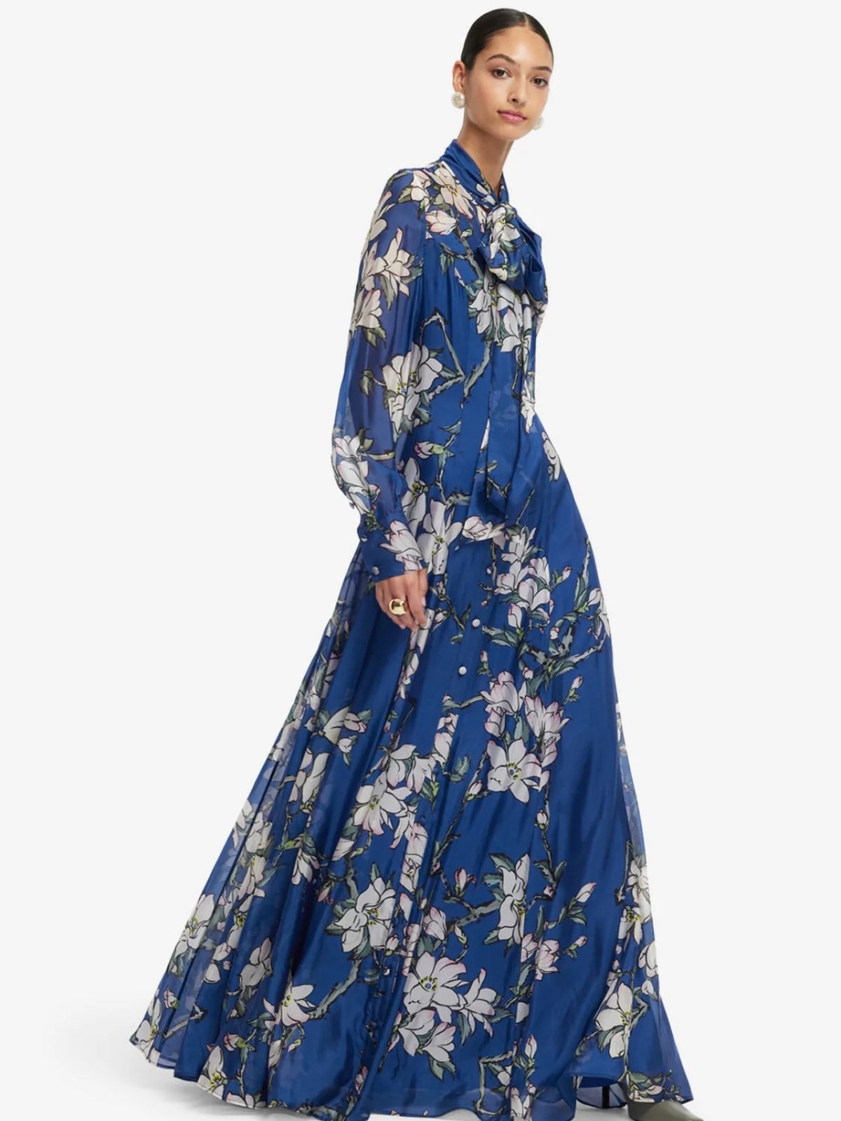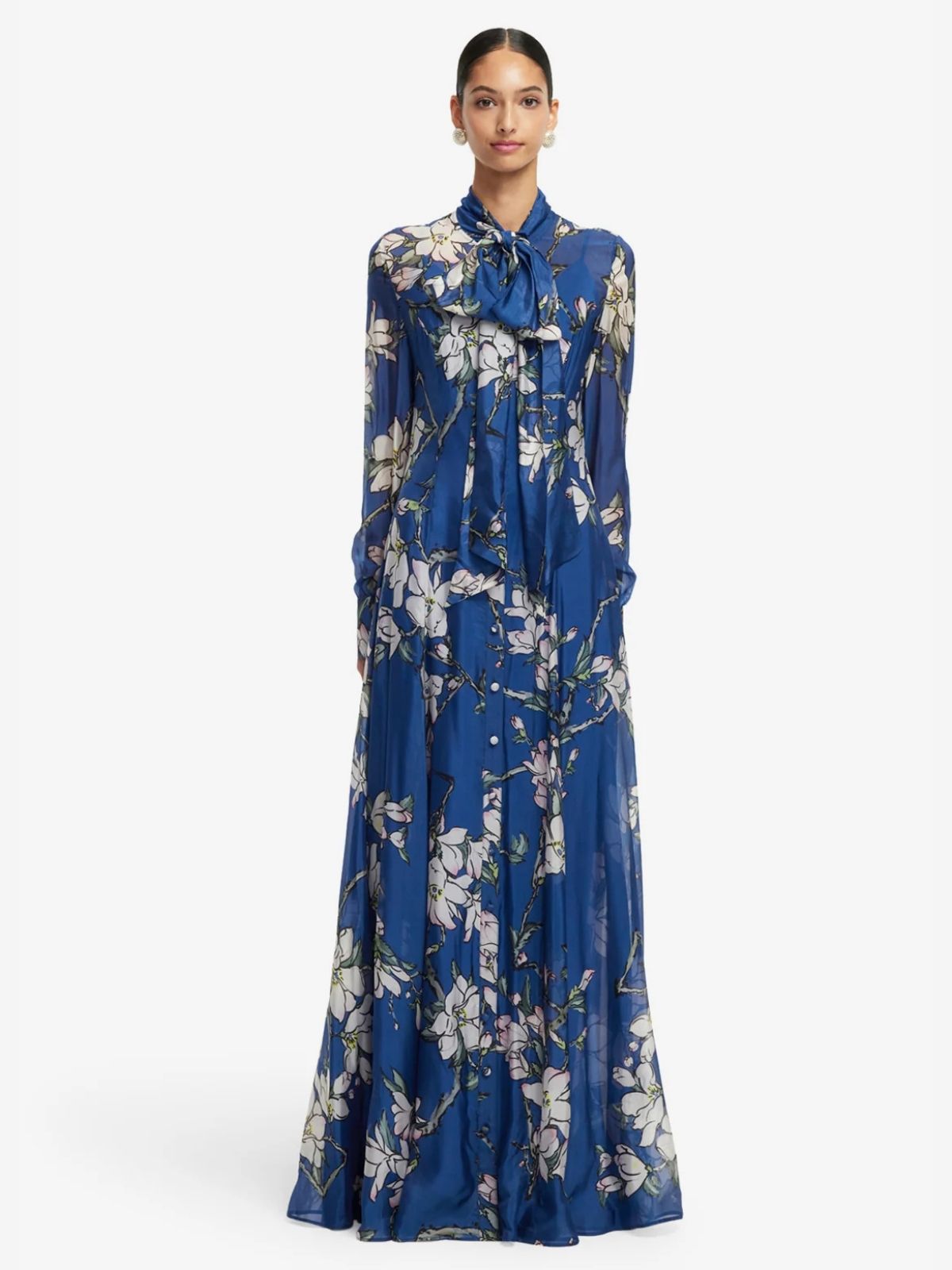 Leo Lin Lilith Tie Neck Maxi Dress in Midnight Magnolia